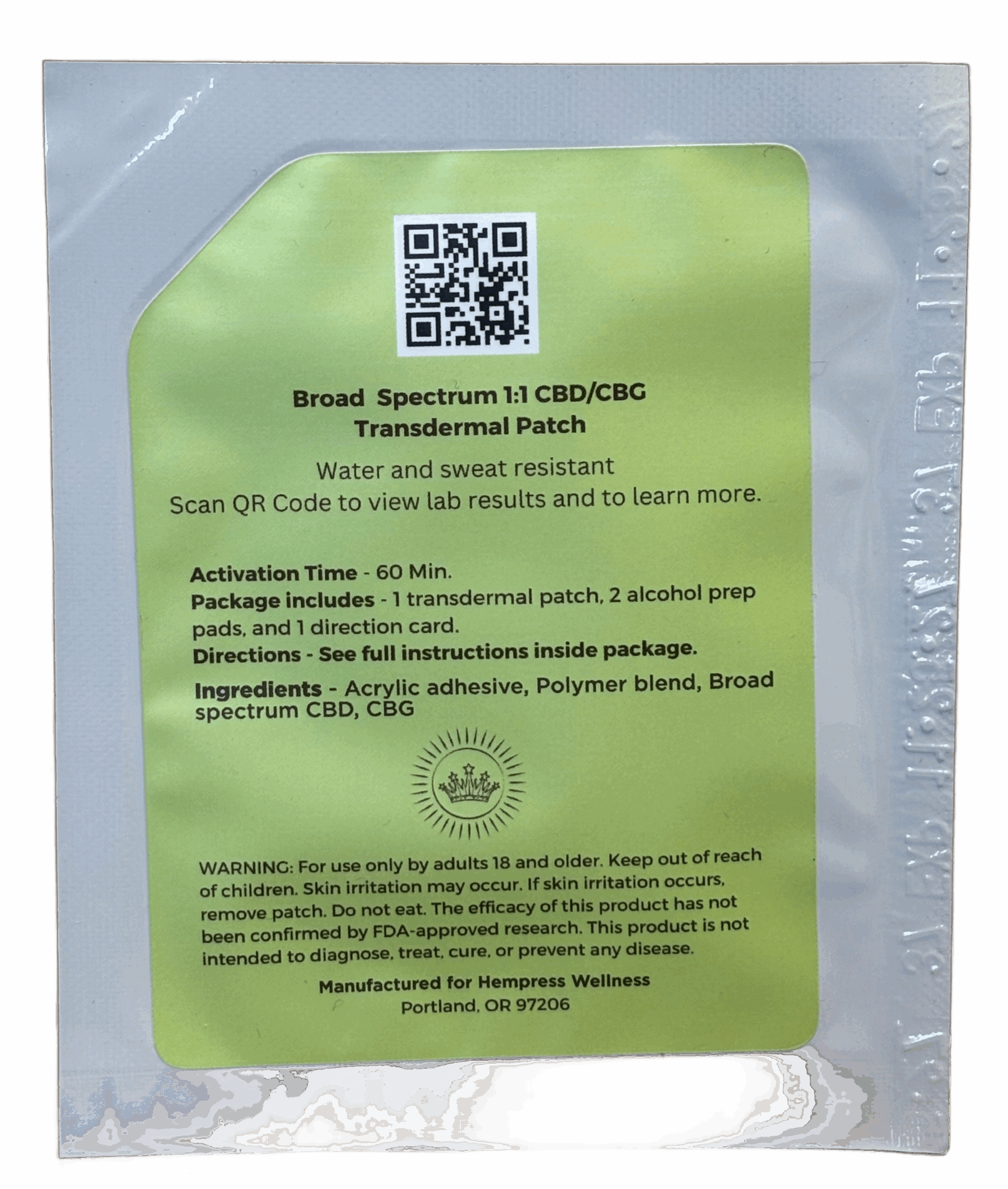 The Hempress CBD:CBG Transdermal Patch provides the delivery of CBD and CBG cannabinoids directly into the bloodstream and allows one to get a set dose every hour up to 24 hours. Our patch is specially formulated to penetrate the skin barrier and go directly into the bloodstream. “Medicine goes where the blood flows.”